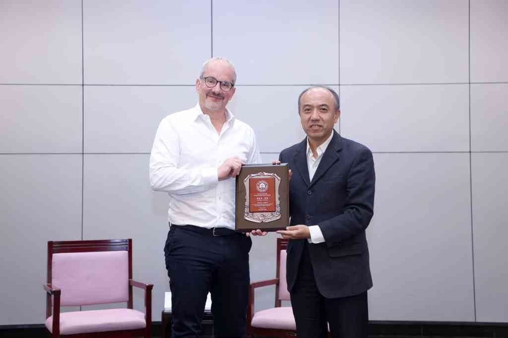 王宏伟向安东尼·海曼赠送开云网海外名师讲堂纪念牌